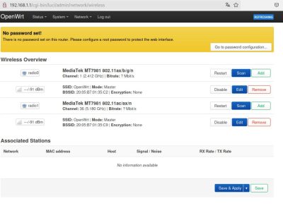 - im Webbrowser OpenWrt-LuCi (http://192.168.1.1/cgi-bin/luci/) im Menüpunkt „System“ den Unterpunkt „Reboot“ und „Perform Reboot“ anklicken